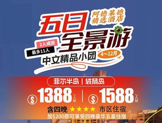 菲尔半岛线-4星住宿 袋鼠岛线-4星住宿